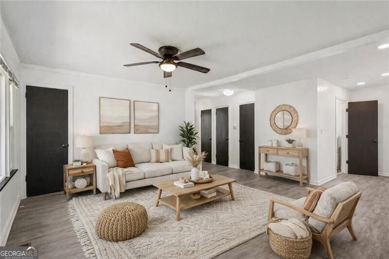 Looking to own your first home or move up from condo living-with no HOA? This could be a great fit. This home offers a functional layout with recent updates that make it easy to move right in. The kitchen and bathrooms have been renovated, and new flooring runs throughout, giving the space a clean, refreshed feel. As you enter, the living area is bright and welcoming, with a small alcove that works well for a home office or flex space. The kitchen features stainless steel appliances and opens comfortably into a separate dining area, making everyday living and entertaining simple. Both bedrooms are well-sized with good natural light. Out back, there's a spacious yard with plenty of potential, whether you want to garden, entertain, or just create your own outdoor oasis. Conveniently located near the airport and with easy access to Atlanta and all major highways. This home offers solid value in an area seeing rapid growth. Come on home to HAPPY Today. (A few pictures have been virtually staged so you can get a sense of the possibilities for this special Home.)