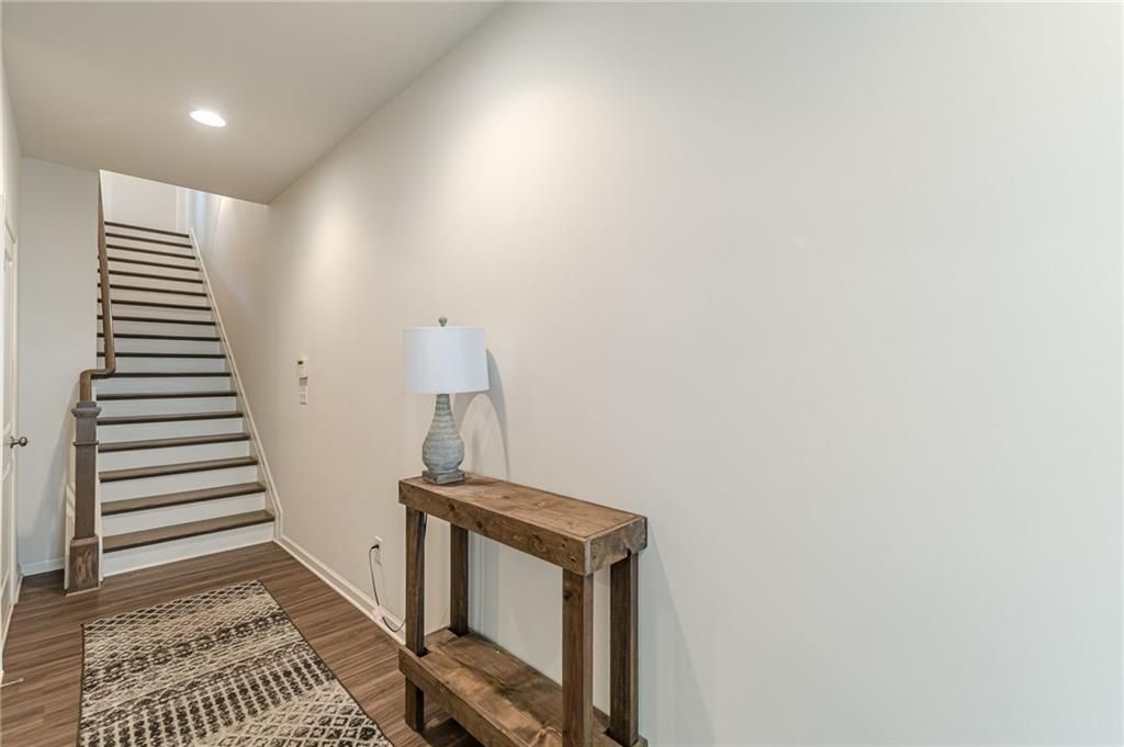 If you are looking for a low-maintenance home or rental property, this townhome is waiting for you! Step inside this like-new 2018 townhome by Edward Andrews Homes/Empire Communities, and you're greeted by 9-foot ceilings, warm wood-grained luxury plank flooring, and thoughtful details like solid oak stair treads that quietly elevate the entire home. The entry-level features a flexible, carpeted guest suite with a full tiled bath and generous closet, making it equally suited for overnight guests or a private home office. Upstairs, the main living level unfolds into a bright, open-concept space anchored by a beautifully appointed kitchen. Quartz countertops, 42-inch cabinetry, stainless steel appliances including a gas range, and a spacious pantry create a kitchen that works as well as it looks. The dining area enjoys peaceful park views, while the great room invites you to open the French doors to a covered deck?perfect for blending indoor comfort with fresh air and easy entertaining. A convenient powder room completes this level. The top floor is designed for both comfort and function. The primary suite offers two closets, including a spacious walk-in, and a well-appointed bath with dual vanities, a separate tiled shower, and a private water closet. An additional bedroom with its own en suite bath provides privacy for family or guests, while the upstairs laundry room adds everyday ease with extra storage space. The tandem two-car garage, complete with carriage-style steel doors, offers abundant storage and includes built-in shelving that remains with the home. Beyond its beauty, this home is built with efficiency in mind, featuring a zoned 14-SEER Lennox heat pump system, two 50-gallon water heaters, low-E windows, enhanced insulation, and advanced air and moisture sealing for year-round comfort. The community has central green space, with a pavilion and outdoor grills, and spur trail leading to the Beltline This is more than a townhome?it's a low-maintenance lifestyle with a view worth coming home to.