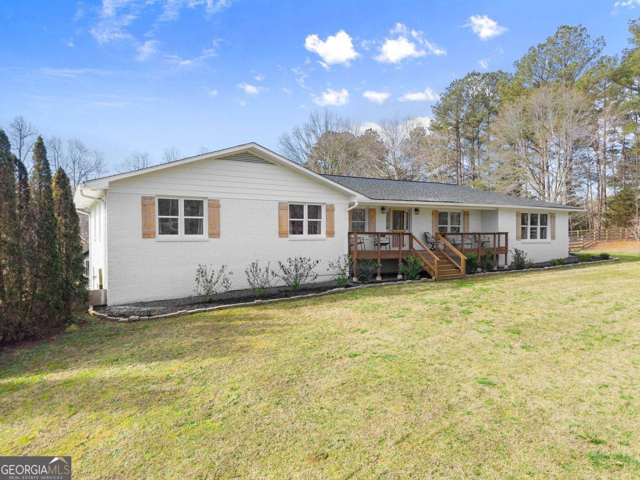 Gorgeous 4-bedroom, 2-bath ranch situated on a breathtaking 8.138 acre waterfront lot in North Forsyth County! Located in a prime location near Matt Town Center makes shopping and dining convenient. This stunning home showcases numerous upgrades, including luxury vinyl plank flooring, new light fixtures, fresh exterior paint, new windows, a newer roof, updated door and cabinet hardware, and freshly painted walls, trim, and doors. The spacious living room offers an open view into the kitchen and dining area, creating a warm and inviting layout perfect for everyday living and entertaining. The kitchen features beautiful white cabinetry, stainless steel appliances, and a naturally lit dining space overlooking the back pasture and reservoir. Just off the kitchen there is a large flex room that could be used for a play room, office, or secondary living room. Next to the flex room you have a full laundry/ mudroom with cabinets for storage. The generously sized primary suite on the main level includes direct access to the back deck and serene views of the water. Three additional bedrooms offer ample closet space, complemented by two full bathrooms. A large unfinished basement provides endless potential-ideal for future expansion or use as storage, a home gym, workshop, or flex space. Outside, the property truly shines. Enjoy a level rolling, fully fenced front pasture, garden area, oversized chicken coop and chicken run, and dedicated play space. The fenced backyard includes a swing set and plenty of room to relax or entertain. The 30x40 shop offers versatility, making it ideal for storing equipment and vehicles, sheltering animals, or supporting a variety of additional uses. This remarkable property features gently rolling pastureland, a mix of hardwood trees, and direct frontage on Reservoir Four. A creek along the rear of the property enhances its natural beauty, creating a peaceful buffer and supporting local wildlife. Ducks, birds, and other wildlife are frequent visitors, making this an ideal retreat for nature lovers and outdoor enthusiasts. With established pastureland, this property presents an excellent opportunity for use as a horse farm or small hobby farm capable of accommodating a variety of animals. This property is truly one of a kind with endless features and uses.