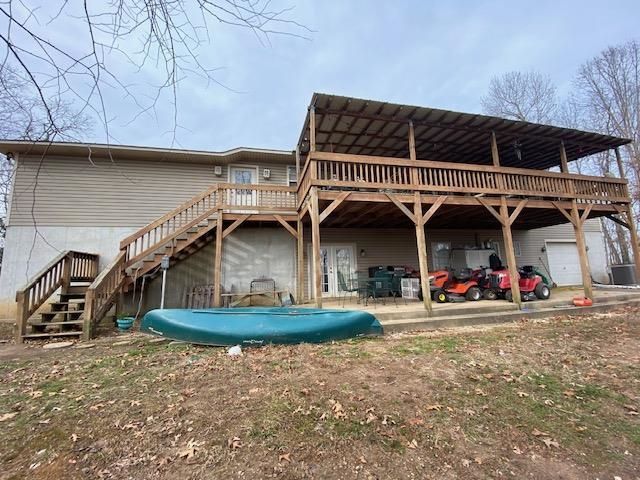 This attractive residence offers a nice blend of privacy and tranquility. Nestled on 36.5 acres, this hilltop home features 3 bedrooms, with a possible 4th bedroom/office, 3.5 bathrooms, providing ample space for both relaxation and entertainment. The property boasts a notable 3,200 sq ft of living space with beautifully arched entryways throughout the home. The large kitchen, bathed in natural light from a charming bay window, provides plenty of space for meal preparation and gatherings. The master en-suite has been remodeled to include a walk-in double shower, enhancing your daily routine with a touch of luxury. Each bedroom is equipped with walk-in closets, ensuring ample storage space for all your needs. The finished basement adds an extra dimension of living space and includes a convenient one-car garage for extra storage. Additionally, the oversized two-car garage on the ground level floor provides plenty of room for your vehicles and storage as well. Entertainment possibilities abound with a covered two-story deck and patio. The property features a mixture of pasture and woods. This home combines modern amenities with the beauty of nature, making it an ideal retreat!