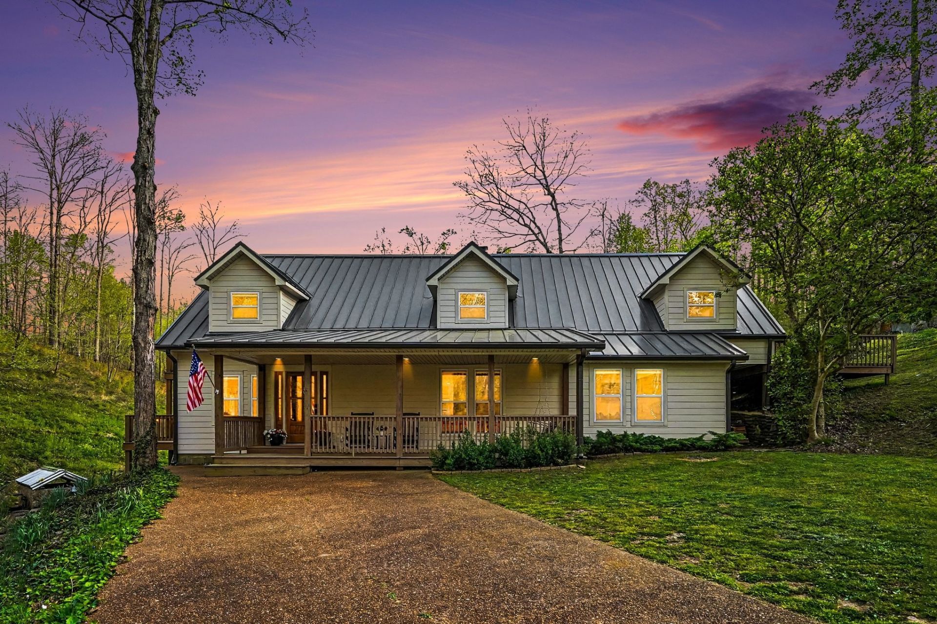 Tucked away on 4.59 breathtaking creek-front acres in Williamson County, this property offers a rare blend of privacy, natural beauty, and thoughtful improvements. As you enter through the tree-lined drive, you're welcomed by the peaceful convergence of two creeks, with the driveway gently following along Caney Fork Creek all the way to the home-setting the tone for the serenity that defines this property. The soothing sound of cascading water can be enjoyed from multiple outdoor living spaces, including three expansive decks, a charming front porch, and a private backyard patio-creating an unmatched connection to nature. The 3-bedroom, 3.5-bath home features beautifully curated finishes throughout, with windows framing picturesque views of the surrounding landscape. Recent enhancements elevate both lifestyle and value, especially the detached two-car garage with a fully finished one bedroom apartment above-currently serving as an income-producing Airbnb, ideal for guests, extended family, or supplemental income. The land itself is a perfect balance of open space and mature woods, offering endless possibilities-from gardening and animals to exploring private walking trails. A charming bridge leads across the creek to a fire pit area, creating a storybook setting for gatherings under the stars. Located on a quiet, low-traffic country road, the home sits well off the street, offering exceptional privacy while still being just minutes from everyday conveniences. Enjoy easy access to grocery stores, dining, and shopping, with a short drive to both Leiper's Fork and downtown Franklin. New roof, 2024, Exterior fencing in backyard, Custom built-in dining seating, whole home water filtration system, enclosed storm shelter with new steel door, new electrical panel in workshop.