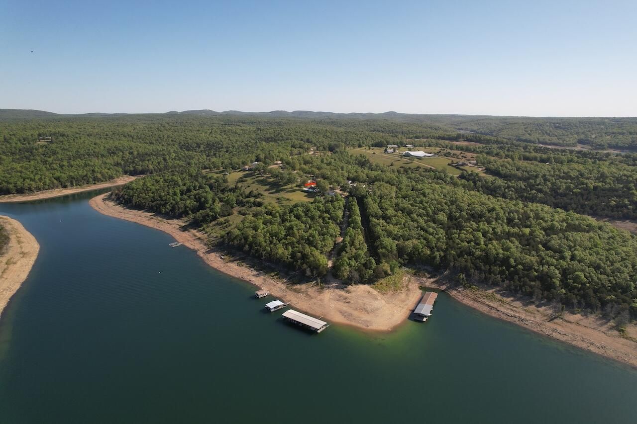 Cabin Overlooking miles of Bull Shoals Lake.This 2 bedroom cabin has a new roof with vinyl siding and shutters, fresh paint inside with luxury vinyl plank flooring throughout. There are 2 electric heat pumps providing heat and AC plus a ventless propane wall heater. The kitchen has custom tile back splash and includes the propane cooktop, toaster oven, refrigerator and built-in microwave. Walk-in Shower in bathroom with new tile surround. Both bedrooms are nice sized, the guest bedroom has a washer/dryer combination unit which is also included.Covered back deck has an awesome view of Bull Shoals Lake as does the entire back yard. Former resort now a private community, privately owned cabins with common ground where the lifestyle has been protected by a set of Covenants and Restrictions. $50 monthly dues cover yard mowing, tree trimming and other common ground needs. There is water access at the end of the road approximately 250 yards and a common area for parking of trailers, campers etc.