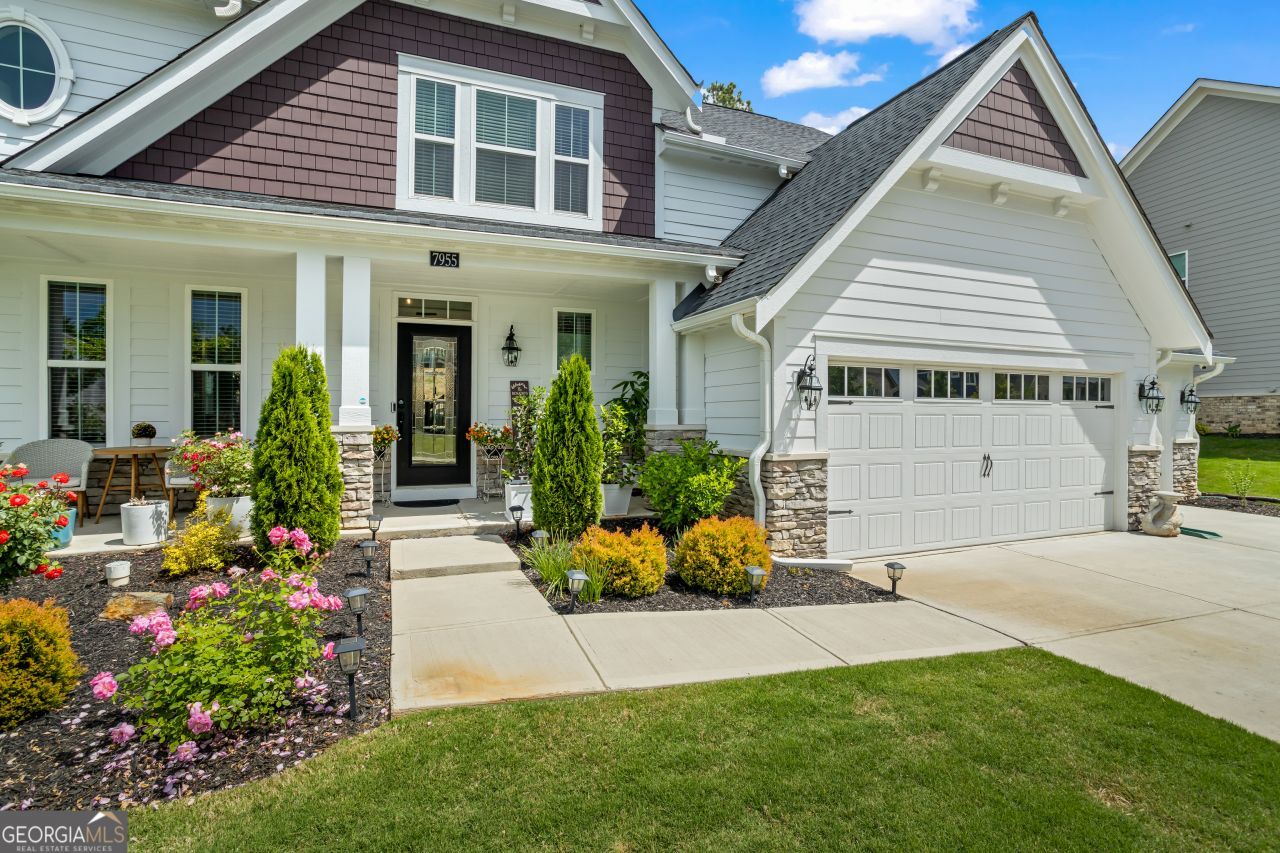 Welcome to 7955 Welch Mill Rd - A Stunning Upgraded Home in Forsyth County's Premier River Rock Community. Nestled on a serene, wooded lot in the highly sought-after River Rock community, this beautifully updated Coastal Cottage-style home offers luxury, functionality, and family-friendly living at its finest. Built by renowned luxury builder Fischer Homes, this is the popular Avery floorplan- thoughtfully enhanced by the current owners with over $50,000 in high-end upgrades. As you step inside, you'll immediately notice the attention to detail. The entire home has been freshly painted with modern, neutral tones and features recessed lighting throughout. The family room showcases a dramatic two-story layout with a floor-to-ceiling stone fireplace, creating the perfect space to relax or entertain. A custom home office just off the kitchen adds convenience for today's work-from-home lifestyle. The kitchen is outfitted with quartz countertops, GE Profile appliances, upgraded soft-close cabinetry in every room, and an extended morning room/dining area, providing additional living and dining space. Upstairs, the home features upgraded Berber carpet, while the master suite has been enhanced with high-end LVP flooring and added recessed lighting. The master bath features upgraded tile, adding a spa-like touch. The Media Room includes engineered hardwood flooring and can easily be converted into an additional bedroom if desired. Additional structural upgrades include four extra windows (two upstairs, two downstairs) for added natural light and a tandem third-car garage offering generous storage. The upgraded iron staircase adds a refined architectural element to the open-concept main floor. Situated just off Highway 369 near the Cumming/Ball Ground border, this home offers easy access to Hwy 400 and is zoned for one of Georgia's top 3 school districts, which includes Poole's Mill Elementary, Liberty Middle School, and North Forsyth High School. The River Rock community enhances everyday living with resort-style amenities such as an Olympic-size pool, kiddie pool, fully accessible grand clubhouse, tennis and pickleball courts, a playground, hiking trails, and direct access to the Etowah River. The neighborhood also hosts monthly family-friendly events, fostering a strong sense of community.