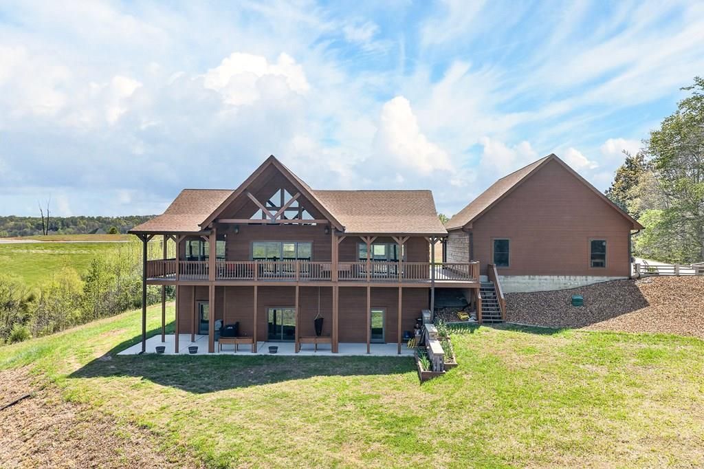 Stunning lakeview Honest Abe log home, built in 2023, offering approx. 3,400 sq ft with 3BR/3BA. The great room features vaulted timber ceilings, stone gas-log fireplace, and hardwood floors. Spacious kitchen with stainless appliances and gas range. Main