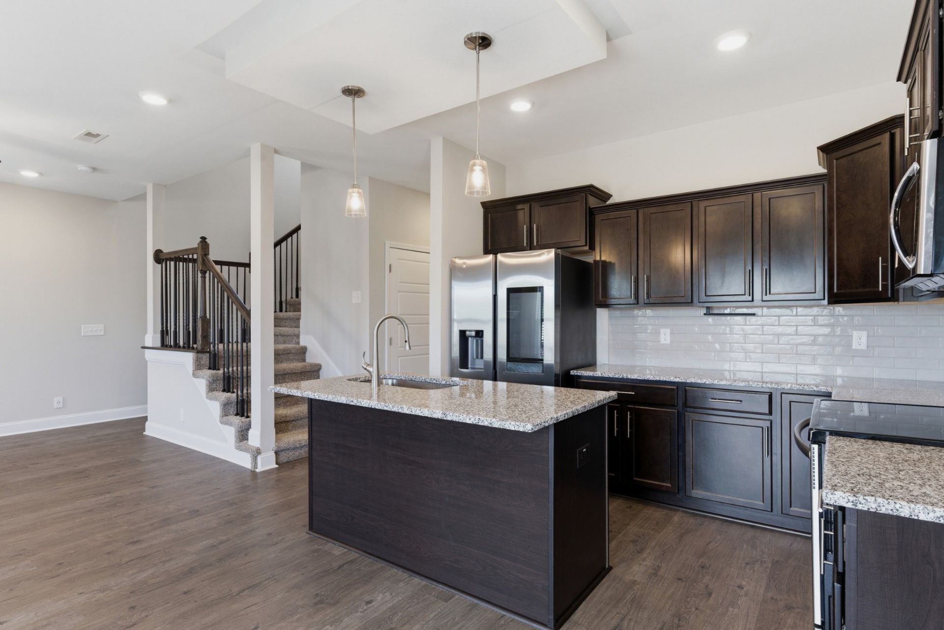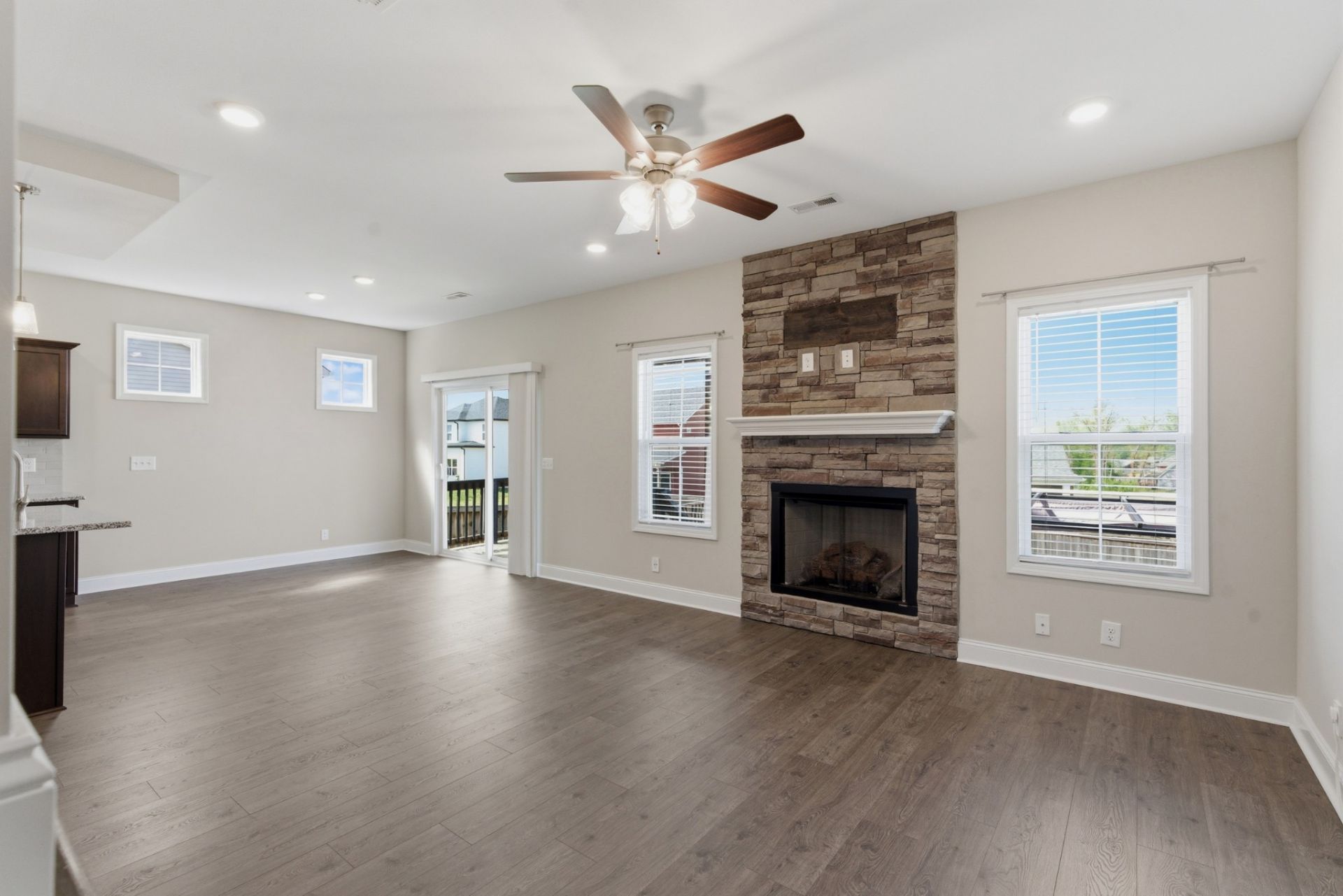 Only four years old, this beautifully maintained home in Clarksville offers modern comfort and thoughtful design throughout. Featuring 3 bedrooms and 2.5 bathrooms, this home sits on a desirable corner lot with a fully fenced, private backyard-perfect for relaxing or entertaining. Enjoy outdoor living on the custom-built deck, ideal for gatherings or quiet evenings.Inside, the open-concept layout is highlighted by a spacious kitchen with granite countertops, a large island with sink, and ample cabinetry. The living room features a cozy gas fireplace, creating a warm and inviting atmosphere.Upstairs, you'll find three generously sized bedrooms, including the primary suite with a walk-in closet and a well-appointed en-suite bathroom featuring double vanities and a tiled walk-in shower. An added touch of luxury, the primary bedroom also includes an electric fireplace for extra comfort and ambiance.This move-in-ready home blends style, functionality, and location-don't miss your opportunity to make it yours!