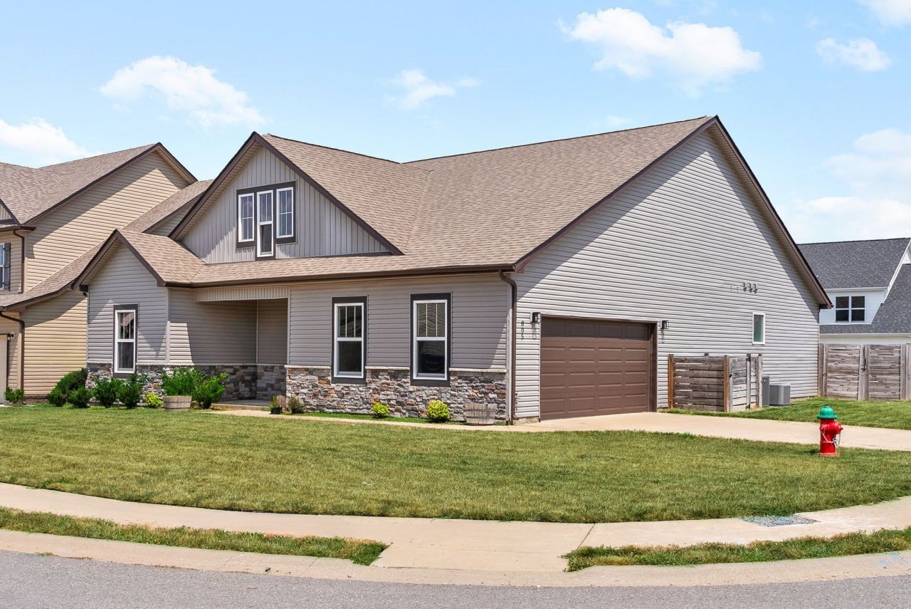 MOVE-IN READY! This like-new home boasts fresh paint, tons of storage, and a convenient corner lot! On the main level, you'll find three bedrooms, an open concept floor plan w/ large pantry, designer touches like the coffered ceiling and stone fireplace in living room, hall tree and mudroom, and a cozy corner for your pets under the stairs. The primary suite features a large en suite bathroom w/ double vanities, massive closet, tiled shower, and bathtub! Two additional bedrooms are on the main level with a full bathroom in between. Upstairs you will find a spacious bonus room + FULL BATHROOM AND STORAGE! Could serve as a second primary bedroom, playroom, or office space. Outside, enjoy a covered patio and private fenced backyard that's great for relaxing or entertaining. Just minutes from Fort Campbell, downtown, and I-24! 2.99% assumable loan!