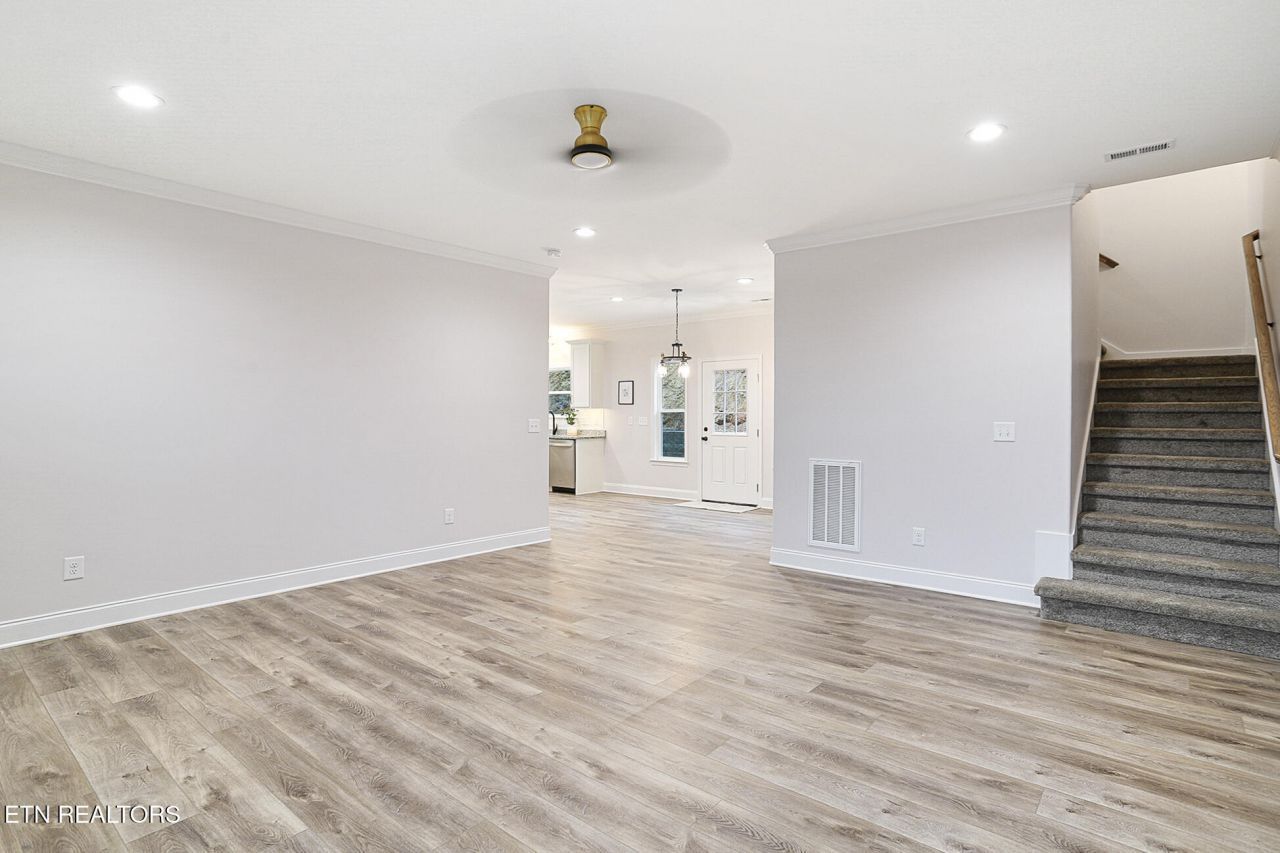 Brand new construction that is conveniently located to downtown Knoxville and I-40. This thoughtfully designed two-story offers stylish finishes and functional living space. All bedrooms are conveniently located on the second floor, providing privacy and a comfortable separation from the main living areas. The main level features durable and attractive LVP flooring, which continues through all bathrooms and the laundry room for easy maintenance. The open-concept layout is enhanced by custom lighting throughout, including under-cabinet and toe-kick lighting in the kitchen, creating a warm and modern atmosphere. The cabinetry has sleek lines, soft close doors, and drawers, and hardware. The granite countertops are throughout out w/ a subway tile backsplash in the kitchen. Each bathroom is beautifully appointed with toe-kick lighting at all vanities and illuminated mirrors, adding both elegance and functionality. There are dualvanities in the guest bathroom and primary bathroom. Step outside to enjoy a private back patio, perfect for relaxing or entertaining. Additional highlights include a side entry garage with extra parking, designed lighting features throughout the home, and quality finishes that make this new construction both stylish and practical. A fantastic opportunity to own a modern, low-maintenance home schedule your showing today! No HOA fees and only County Taxes.