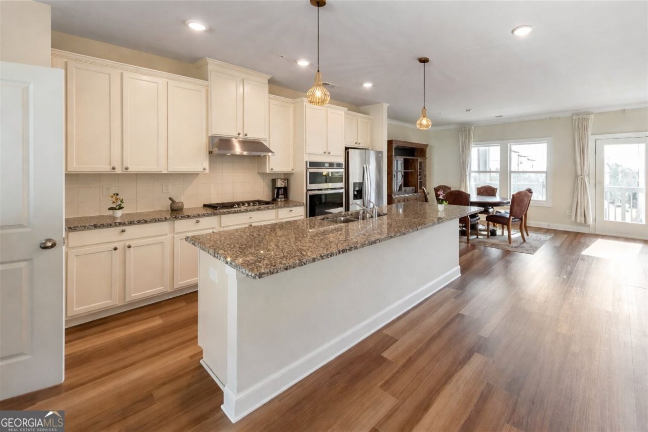 IF BUYER PREFERS WHITE OR AN ALTERNATIVE COLOR OF THE CABINETS THROUGHOUT THE HOME VS THE STAINED WOOD THE SELLER IS OFFERING A CREDIT TOWARD PROFESSIONALLY REFINISHING/PAINTING WITH AN ACCEPTABLE OFFER BY THE END OF APRIL!! RECENT $10,000 PRICE REDUCTION AND A PRIME LOCATION! Here it is! The perfect home your family has been looking for! Built in 2022 and impeccably maintained, this stunning 4 bed / 3.5 bath move-in ready townhome offers modern comfort in a highly desirable Woodstock setting. Conveniently located near Costco and I-575, this residence provides easy access to shopping, dining, and everyday conveniences. This home offers a beautiful blend of abundant natural light and stunning unobstructed mountain and forest views from all three floors, providing exceptional privacy. A spacious kitchen boasts granite countertops, an expansive island with a breakfast bar, stainless steel appliances, and a walk-in pantry. All appliances are included with the home, including washer and dryer and two refrigerators. The spacious dining area is perfect for gatherings while the fireside living room offers a warm and inviting space to relax. Upstairs, the primary suite serves as a private retreat with a well-appointed ensuite featuring a double vanity, a walk-in shower, and ample closet space. The upstairs laundry is complete with washer and dryer. The terrace level includes its own bedroom and private bathroom, offering flexible space for guests, a home office, or multi-generational living. Step outside to enjoy quiet moments on the deck or front porch, soaking in the peaceful surroundings. Smart home technology, a hardwired ADT security system with front and rear cameras, and high-speed fiber-optic internet on all three floors provide modern convenience. Energy Star certification ensures efficiency, while low-maintenance HOA-managed exteriors and yard care make everyday living effortless. The community offers a pool and park, enhancing the outdoor lifestyle, and the home is perfectly set back with no cut-through traffic, yet just two miles from I-575, downtown Woodstock, Old Mill Park, schools, shopping, dining, concerts, and trail access. No rental restrictions make this an excellent opportunity for investors or buyers seeking flexibility. Clean, quiet, and move-in ready, this home offers comfort, convenience, and a chance to live in style.