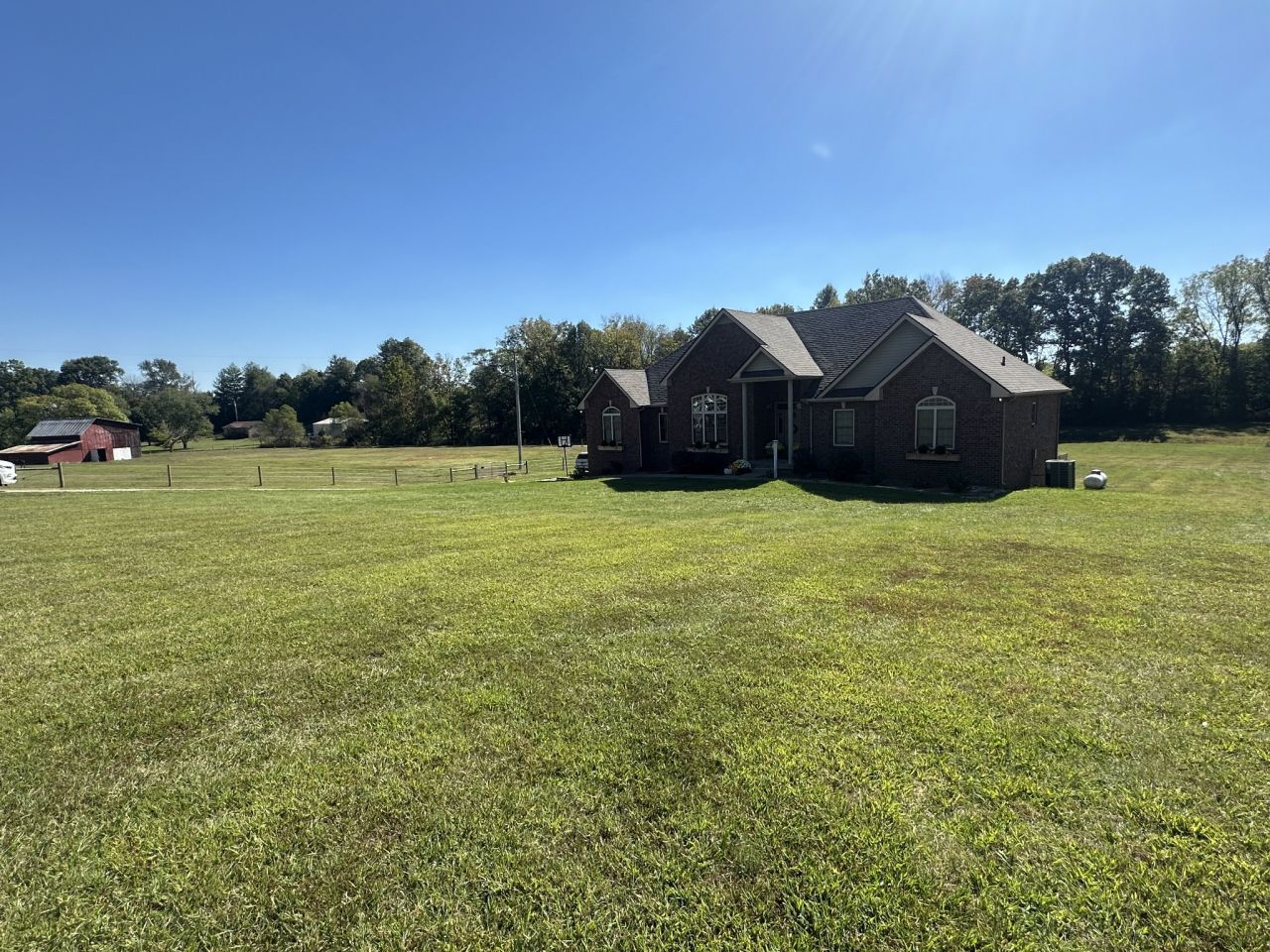 Beautiful home sitting on 5.99 open acres with a creek. The home has a new roof, updated flooring, new granite counter tops, and freshly painted within the last 3 years .. It also has had new lighting almost throughout. The partially finished basement is a great place for family fun and entertainment, a home office, or whatever your need might be. The property is gently rolling, and has new electrobraid fencing for your livestock or horses. Not only is there a 40x32 tobacco barn on the property, but a 30 x 40 detached garage that has updraded lighting, which is in addition to the 3 car attached garage. Looking for a place to raise chickens? The detached garage-shop has a 30 foot long chicken coop and run attached. And for the young at heart, a treehouse also resides on the property.