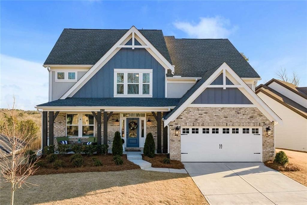 Built in 2023 and located in desirable Forsyth County, this thoughtfully upgraded home sits near the highest point in the neighborhood and offers long-range views along with beautiful natural surroundings and access to resort-style community amenities ? all at an exceptional value. The home features a north-facing front entry and a private lot with no homes directly behind. The main level offers an open, light-filled layout designed for everyday living and entertaining, with a welcoming foyer leading to a private home office with French doors and a seamless flow between the kitchen, dining area, and family room. The spacious two-story family room is a true focal point, featuring a wall of windows that fills the home with natural light and a dramatic floor-to-ceiling fireplace. The kitchen includes quartz countertops, white cabinetry, stainless appliances, a large island, and designer tile backsplash. Upstairs, the primary suite offers dual walk-in closets and a well-appointed bath with dual vanities and an oversized shower, while secondary bedrooms are generously sized and thoughtfully positioned. The finished lower level adds exceptional flexibility and is currently configured as a home office with a full wall of custom built-ins, ideal for remote work or multi-purpose living. Additional upgrades include Baldwin door hardware, an irrigation system, fenced backyard, and an expanded footprint with both the breakfast room and garage widened by 4 feet during construction. The laundry room includes a utility sink/dog wash station, and major appliances convey, including the washer, dryer, kitchen refrigerator, and family room TV. Outdoor living is equally appealing, with a covered rear porch overlooking peaceful surroundings and a fully fenced yard that has been professionally landscaped. Residents enjoy extensive community amenities including a clubhouse, tennis courts, playground, and a large pool complex with lap lanes and a separate wading pool. Tucked into a quieter pocket of Forsyth County yet convenient to the area's ongoing growth and amenities, this move-in-ready home delivers the rare combination of newer construction, meaningful upgrades, and strong long-term value.