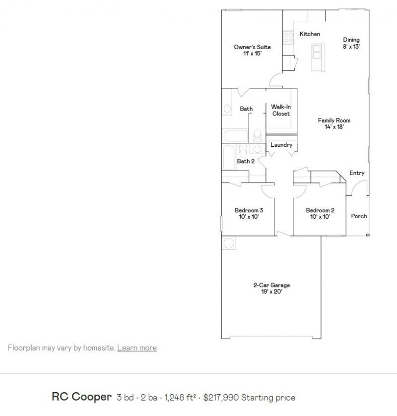 The Cooper, a beautifully designed new construction home offering 3 bedrooms, 2 bathrooms, and 1,248 square feet of thoughtfully crafted living space. Perfect for first-time homeowners, growing families, or those looking to downsize without compromise, this single-level home blends functionality with modern charm. Step inside to an open-concept layout that seamlessly connects the living, dining, and kitchen areas, ideal for entertaining or relaxing in everyday comfort. The kitchen features sleek cabinetry, energy-efficient appliances, and a central island perfect for meals or casual conversation. The cozy primary suite is tucked away for privacy and includes a walk-in closet and an en-suite bathroom. 2 additional bedrooms and a second full bath provide flexibility for family, guests, or a home office. Energy-efficient systems, modern fixtures, and quality materials throughout ensure peace of mind and lasting value. Outside, enjoy a covered entry, attached garage, and a backyard space ready for your personal touch.