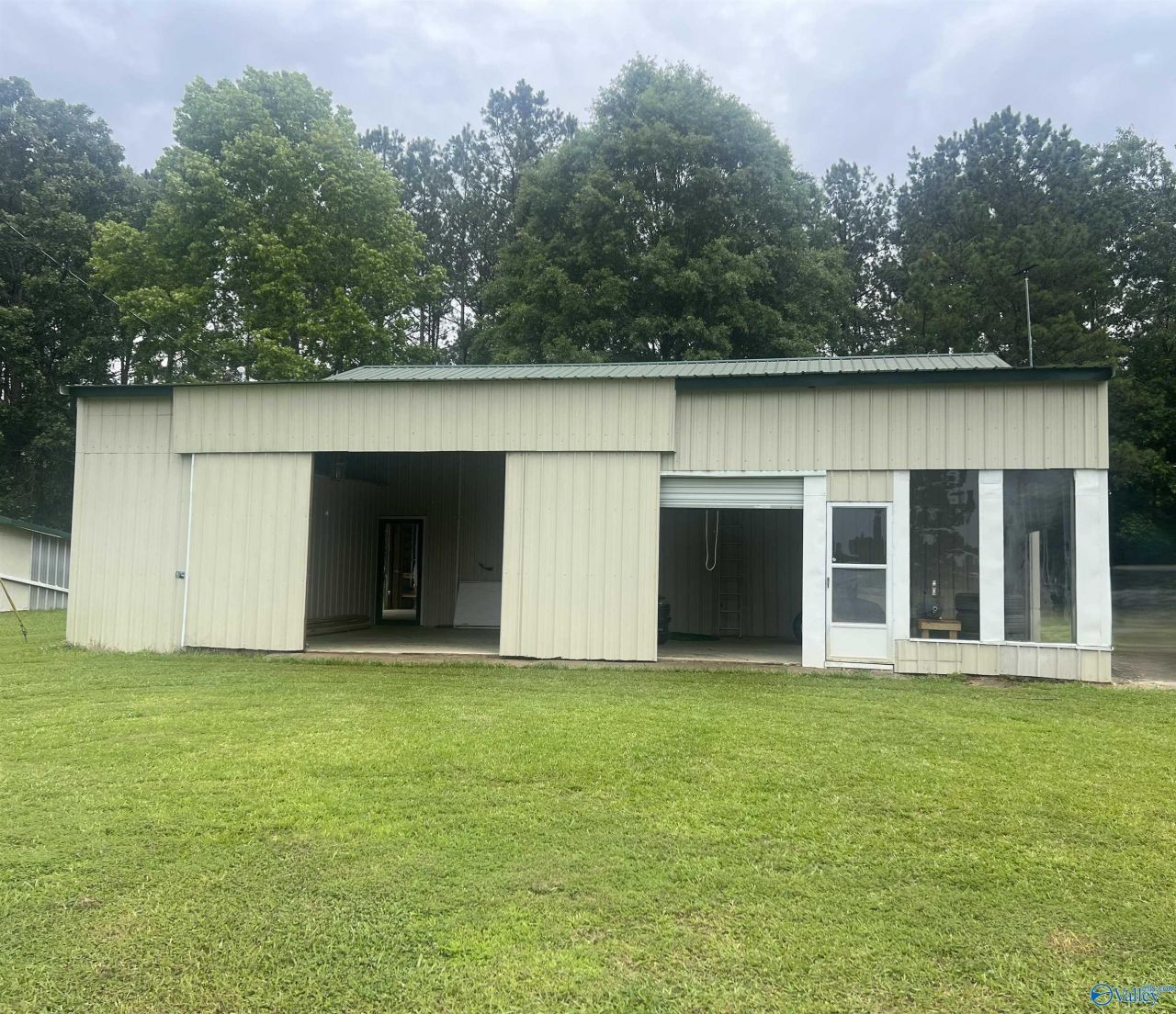 Large Barn/Workshop. 35'x50'. Ceiling height is 20' in main building. Front Addition has entry door and roll up door on front, and roll up door on right side. Interior office area with locking door. Main section has 16' door on right side and sliding doors on left side. Fifth Wheel camper also included with the sale of the workshop. More details to come.