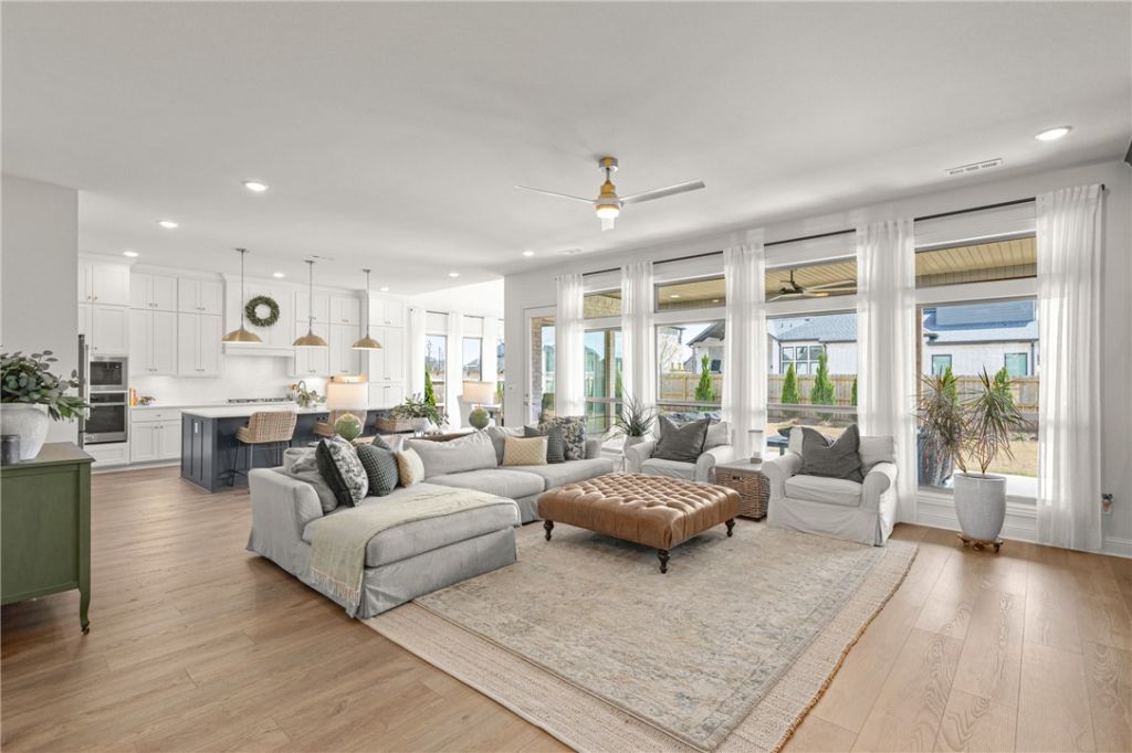 Move-in ready Evening Star residence showcasing refined upgrades & exceptional attention to detail. Professionally landscaped grounds set the tone for an impeccably curated interior featuring designer lighting, custom fireplace surround, stair runner, drapery & automated blinds. Main living area offers a serene, light-filled space with built-ins and a statement fireplace. Kitchen is appointed with quartz countertops, gas cooktop, built-in oven & walk in pantry. Elegant dining space. Enjoy outdoor living on the covered patio. Functional luxury continues with a spacious laundry and mudroom off the 3-car garage. The main level hosts two guest suites with walk-in closets and a dual-vanity guest bath. The private primary retreat features wood floors, abundant natural light, and a spa-inspired bath with soaking tub, large walk-in shower, and WIC. Upstairs offers a secondary living area and en-suite bedroom. All located in highly sought after community with amenities, near schools, and Pinnacle district.