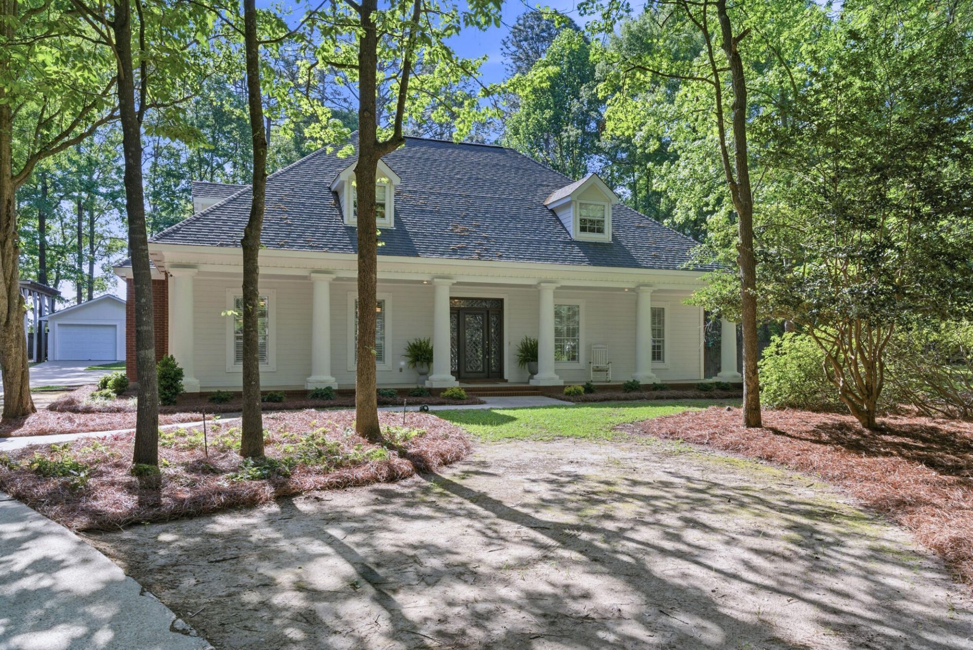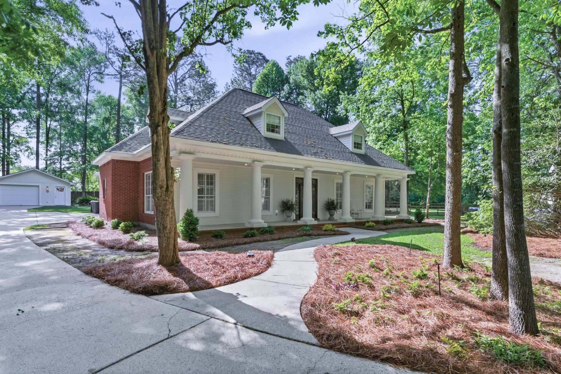 AGELESS SIX-COLUMNED COLONIAL, TUCKED AWAY ON A QUIET, OAK GROVE CUL-DE-SAC! YOUR BOAT AND RV CAN BE PARKED UNDER COVER OUT BACK - READY TO GO! This carefully family-planned home is perfect for the growing family which is situated adjacent to the Oak Grove Middle School. Large rooms including all four bedrooms plus really large closets are throughout. Solid 4'' oak hardwood plank flooring is located in the large foyer, the gracious formal dining and welcoming great room. All windows on the first floor are covered by wood shutters including the granite-topped work island kitchen and the relaxing casual dining room. This functionally designed kitchen has abundant pull-out storage shelving and drawers plus generous counter space. All kitchen appliances remain as well as the washer and dryer in the adjoining laundry. A 483-sf double carport is accessed via a hallway from the kitchen where the separate laundry and half bath are conveniently located. A rear patio overlooks a large, fenced back yard including a 4-piece patio set, a fire pit plus a handsome 20' X 24' workshop with air-conditioning, with roll up garage door. NOT A 'DRIVE-BY''! Call for your personal showing!