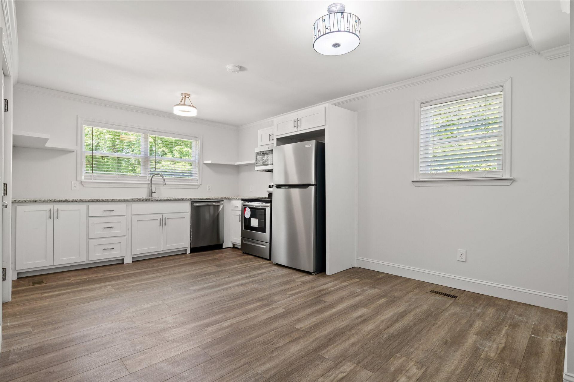 Welcome to 9 Virginia Avenue in Rossville, GA -- a move in ready home perfect for first time buyers, downsizers, or investors. Situated on a corner lot just minutes from Chattanooga, this updated 2 bedroom, 2 bathroom home offers easy one level living with modern upgrades throughout.Step inside to updated flooring and fresh neutral paint, creating a bright and inviting space. The spacious living room flows into the updated kitchen featuring stainless steel appliances, making it ideal for both everyday living and entertaining. Both bedrooms are well sized, and the two updated full baths provide added comfort and functionality. Both bathrooms have been updated and the primary features an over sized tiled shower. The laundry is conveniently located in the primary suite for ease of use. Outside, enjoy a large yard with space for kids, pets, or outdoor gatherings. A nice sized deck offers privacy and the perfect space to relax in the evenings with a glass of wine. A sizable storage building in addition to a single car garage can handle all your storage needs. . The corner lot offers added privacy and flexibility, making this property attractive for both homeowners and investors seeking rental potential.Conveniently located near the Chickamauga and Chattanooga National Military Park and the shopping and dining of Fort Oglethorpe, this home combines affordability, location, and lifestyle.Whether you are looking for your first home or a smart investment opportunity, this property checks all the boxes. Schedule your private showing today.
