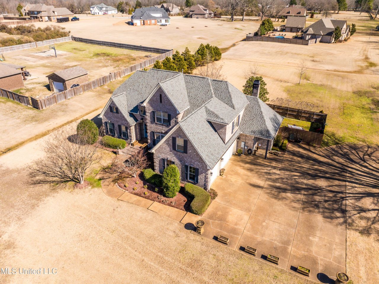 Gorgeous, custom-built, 5 bed, 4 bath home, thoughtfully designed by Ed Yenderick of Classic Home Design & sits on an almost 2-acre lot in an ideal location just minutes from the heart of Collierville & Olive Branch. Step inside and be wowed by the solid hickory floors, 10-ft ceilings, custom millwork, floor-to-ceiling fieldstone fireplace, French doors & open-concept living. Stunning kitchen with custom hickory cabinetry, imported Brazilian Mascarello granite countertops, and high end SS applainces including the commercial-grade 48'' gas range with 6 burners/griddle, double ovens and custom venthood. Serene primary suite on main level complete with spa-like bathroom with double vanities, custom built-ins, separate tub and walk-in shower as well as a custom walk-in closet. 2nd bed also on main with private ensuite bath & walk-in closet in a split bedroom plan. 3 additional beds up + 2 full baths & bonus room & separate office. Enjoy the outdoors all year long under the covered patio complete with outdoor fireplace & phantom screens as well as the extended open patio area, great for outdoor cooking & entertaining. The backyard truly feels like your very sanctuary with open areas, professional landscaping & small, private fenced in area adjacent to patio.