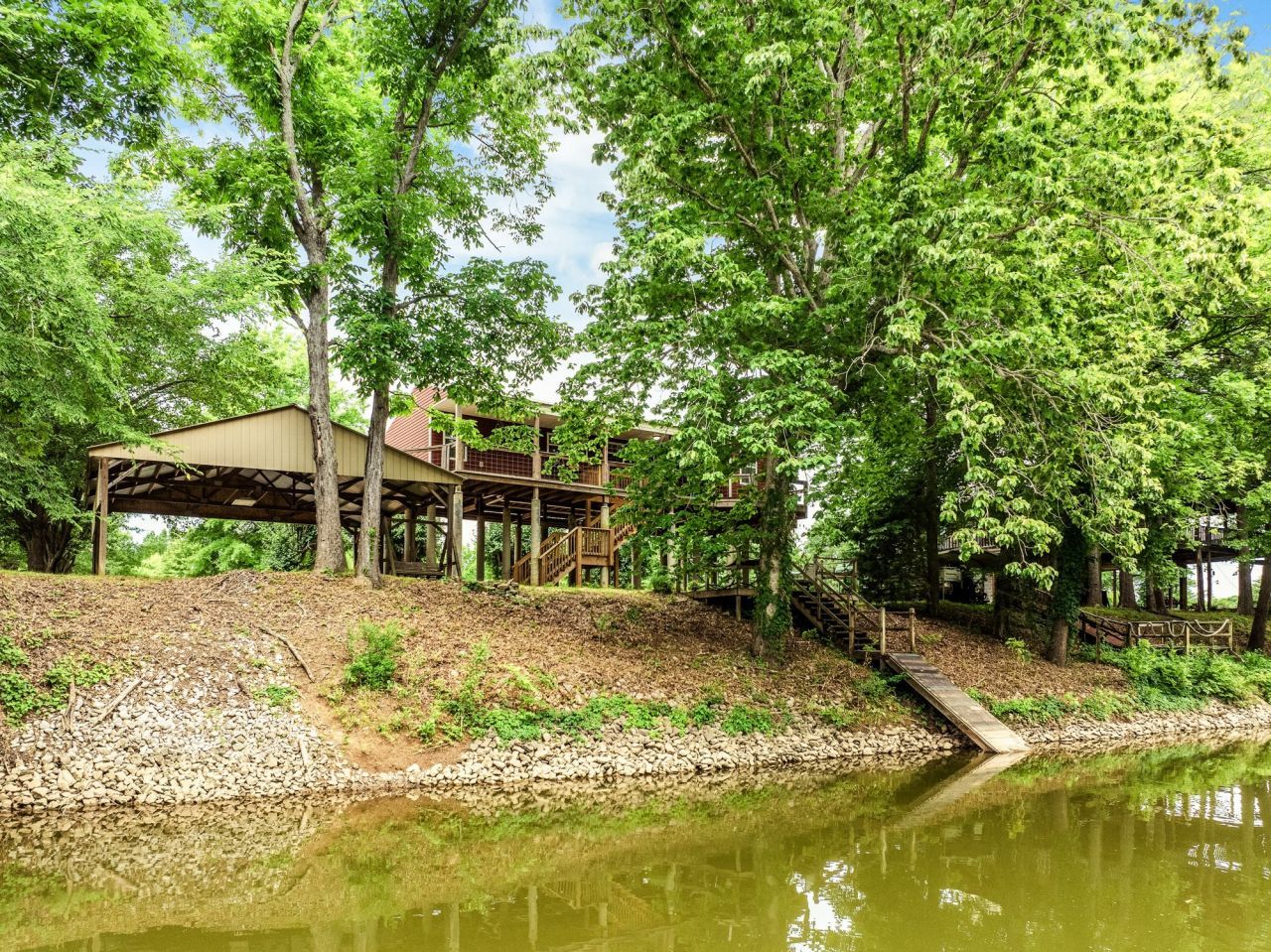 Picture yourself in a private oasis on Whites Creek, just off the Tennessee River's main channel! This fully remodeled 2-bedroom, 2-bath home with a split floor plan has been replumbed and elevated above the floodplain for worry-free living. The expansive wraparound deck offers ample space to enjoy mature shade trees, wildlife, and passing boats, with frequent sightings of eagles, deer, and turkey. Steps lead from an outdoor deck to the creek, where a boat dock once stood in a deep, sheltered section-perfect for protecting your boat from the main channel's currents and waves (TVA permit required for dock installation). Situated on two waterfront lots in a welcoming gated community, the home is just three houses from the community boat ramp, with Mermaid Marina, Perryville Marina, Tennessee River Golf Course, and nearby islands and sandy beaches ideal for swimming, fishing, and boating. This turnkey home is move-in ready, perfect for a small family, weekend getaway, or vacation rental. Kitchen appliances are included, and some furniture is negotiable. A 10-ft-tall, 30x36-ft double-wide carport provides covered parking for boats, ATVs, or vehicles. The low-maintenance lot maximizes time with family and friends. Located halfway between Memphis and Nashville, with Decaturville's grocery and hardware stores a short drive away, Don't miss out on this rare opportunity to own a waterfront home at this price!