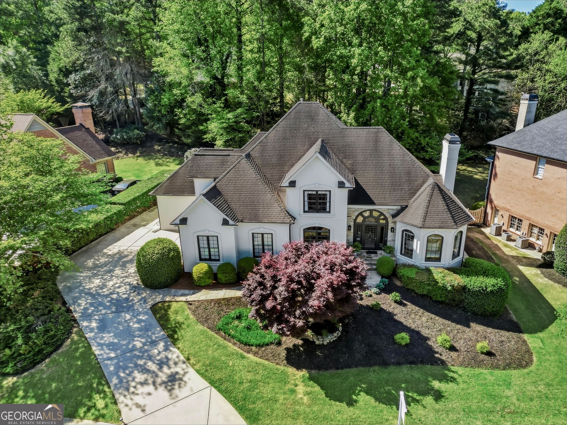 Welcome to coveted living in Nesbit Lakes, a stunning 6 bedroom, 4.5 bath retreat directly across from the private lake in one of Alpharetta's most sought after swim and tennis communities. Step through the dramatic two story foyer into a home flooded with natural light and rich select grade oak hardwoods throughout. The formal dining room comfortably seats twelve plus, while the elegant sitting room, easily versatile as a home office, overlooks the beautifully manicured landscaping. The heart of the home is an upgraded chef's kitchen featuring like new premium Z Line appliances, opening seamlessly to a breathtaking two story great room anchored by a fireplace and custom designed TV feature wall. Step out to the deck and unwind to the sound of birds among the flowers and dogwood trees. The oversized primary suite is filled with natural light and offers direct access to the back deck overlooking the private backyard. The spa like primary bath features a double vanity and spacious walk in closet. Four additional generous bedrooms and two Jack and Jill bathrooms complete the upper level. The fully finished terrace level is a true showstopper: a private in law or income suite with full kitchen, living room, dining room, bedroom, dedicated office, separate laundry, and its own private entrance. Ideal for multigenerational living, long term guests, or rental potential. Fully integrated smart home technology includes Alexa intercom control throughout, voice command music, lighting, garage, temperature, video doorbell, and full video surveillance. Additional upgrades include exterior ambient lighting and a 4 zone sprinkler system. This home is ready and awaiting your personal touch to make it your own. Community Highlights Nesbit Lakes offers resort style living with a 37 acre private lake, marina, community dock, boating and fishing, swimming pool, tennis courts, pickleball, fitness center, clubhouse, dog park, playground, walking trails, and more. This is more than a home. It's a lifestyle. Schedule your private tour today! Terrace level access is via the exterior side door on the right side of the home when facing the front.