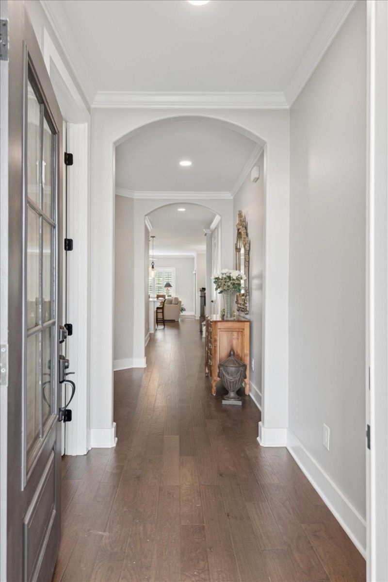 Welcome to this beautifully upgraded home in the highly desirable Millstone community, where luxury finishes and thoughtful details create a truly move-in-ready home. The main level features hardwood flooring throughout, 8-foot doors, craftsman trim, crown molding, and elegant archways. A private study with French glass doors offers the perfect work-from-home space. The gourmet kitchen is a standout with quartz countertops, glass-front cabinetry, and Frigidaire Gallery appliances including a double oven, built-in microwave, and gas cooktop. The open layout flows into the dining area with added wainscoting and updated lighting, and a spacious living room with ceiling fan.The main-level primary suite offers a tray ceiling, spa-like bath with dual vanities, cultured marble countertops, and a tiled walk-in shower with frameless glass door. Ceramic tile flooring is featured in all bathrooms and laundry. Upstairs includes a fully finished second level with full bath-ideal as a private 3rd (or even 4th) bedroom suite with easy access to a hall closet, or perfect for guests, bonus space, or a secluded retreat-plus attic storage. Since purchase, upgrades include plantation shutters, smart recessed lighting, remote patio screens, sealed aggregate exterior surfaces, fresh interior paint, updated fixtures, added shelving, Ring doorbell, and keyless entry. Enjoy the covered patio pre-wired for a ceiling fan, plus a second uncovered aggregate patio-perfect for relaxing or entertaining. This meticulously maintained home offers low-maintenance living with high-end upgrades-Don't miss it!