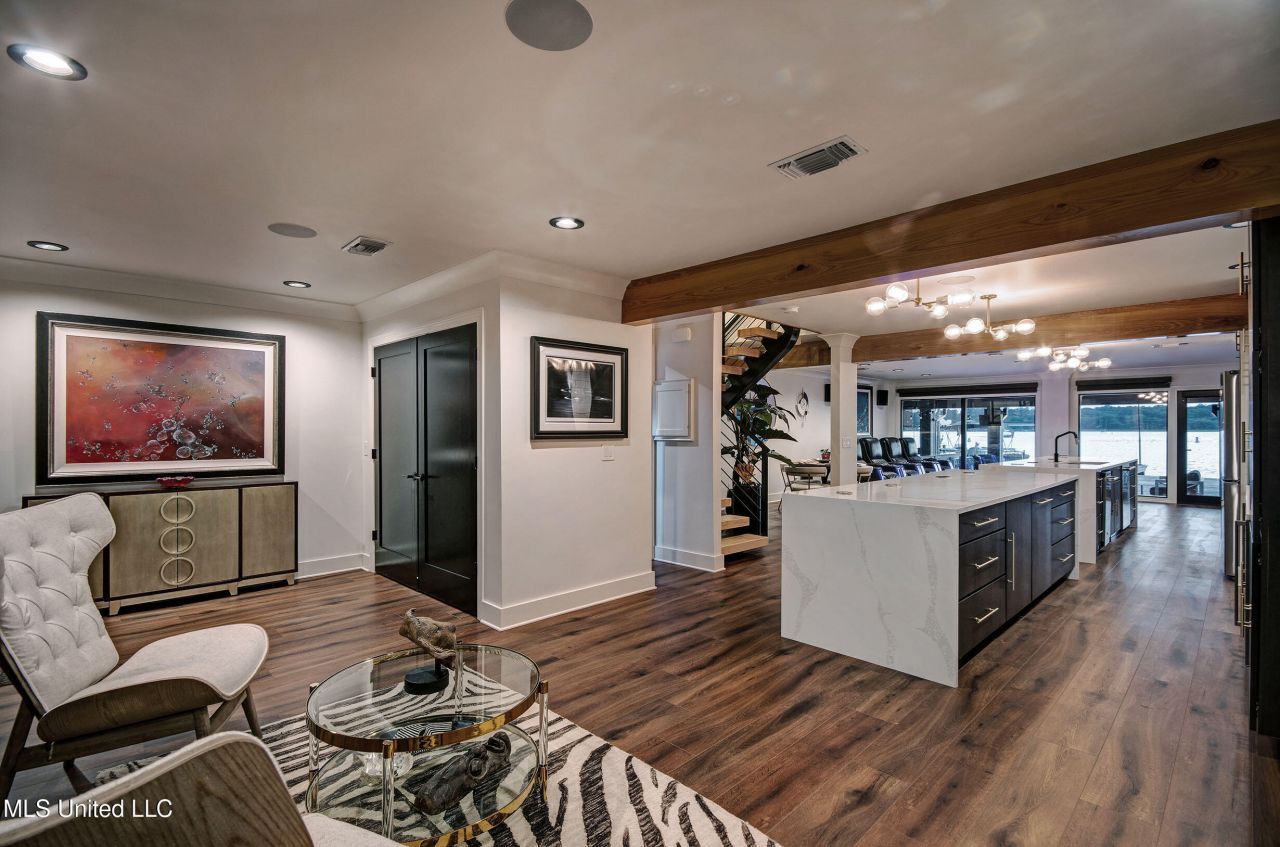 Located at 92 Breaker Lane in Ridgeland, MS, this beautiful completely renovated 2 story ''smart home'' condominium is in the desirable Breakers Community and offers a serene lifestyle against the backdrop of the Ross Barnett Reservoir. Spanning an area that brings comfort and unbinding space, this condominium provides an ideal setting for both relaxation and entertainment. Upon entering the condominium, you will find a charming living room with a fireplace to curl up with a good book to help unwind your day. Through the open layout you enter the entertainment section. Everyone will always end up here. Complete with beverage and wine cooler, ice maker, and an enormous television and audio center. Adjacent to the living room is a gourmet kitchen that is sure to delight any chef with complete top of line appliances and designed for culinary creativity. Afterwards is the den characterized by a striking glass wall that offers unobstructed views of the mesmerizing sunsets. Next step out to your 25' x 40' foot private deck with two boat docks. The condominium boasts a massive primary bedroom that includes an office wall, making it a perfect blend of comfort and productivity. The room opens to a patio where you can unwind and take in the beautiful sunset views. The bathroom is equally impressive, featuring a separate walk-in shower and tub, adding to the space's overall luxury. One of the standout features of this property is its fantastic location. The condominium sits on the 24,000-acre Ross Barnett Reservoir, a haven for various water sports such as boating, skiing, jet skiing, paddleboarding, and kayaking. The area is also perfect for animal watching and fishing, making it an angler's dream with its diverse array of sport fish including bass, crappie, and bream. The Reservoir is even a host site for a Bass Masters Tournament, adding a touch of excitement for fishing enthusiasts. The Breakers Condominium community itself provides a tranquil retreat with a friendly neighborhood vibe, surrounded by natural beauty yet conveniently close to urban amenities. Overall, this condominium at The Breakers offers an exceptional combination of spacious luxury living, scenic beauty, and a plethora of outdoor activities right at your doorstep. Whether you're an avid adventurer or someone seeking a peaceful living environment with stunning sunset views, this property accommodates a blend of each.