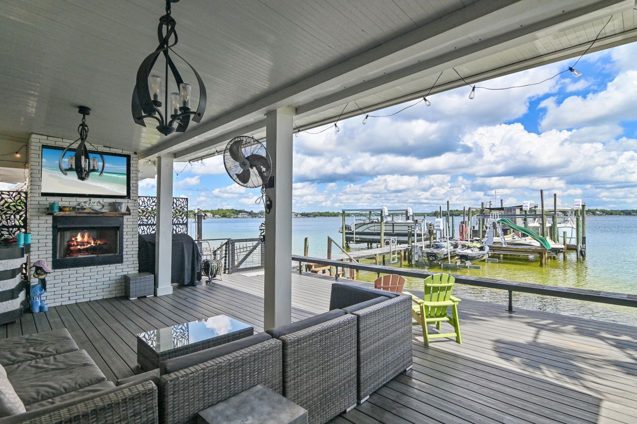 Wake up to the water, step onto your dock, and head out whenever the day calls.Behind the gates of Lighthouse Pointe, this renovated waterfront home is designed for easy Florida living, where time is spent outside and on the water. With two boat lifts, a jet ski lift, and walk-out access to the bayou, spontaneous swims, paddle sessions, sunset cruises, and quick trips to Crab Island become part of everyday life.Inside, the open layout invites natural light and water views throughout, creating a relaxed flow that connects living spaces to the outdoors. Step onto the Trex deck and outdoor kitchen?perfect for casual gatherings after a day on the water?then settle in by the outdoor fireplace as the evening breeze moves across the bayou.The primary suite is a private retreat overlooking the water, featuring its own fireplace, a soaking tub, and a spacious open showerideal for slow mornings and quiet nights. Thoughtful touches continue outside with a side yard for pets and a convenient doggie door, making it easy for four-legged family members to enjoy the space as much as you do.Whether you're pulling blue crabs from the trap for dinner, watching boats glide by, or simply enjoying the calm of the bayou, this home offers a lifestyle centered on the water. Located within the gated community of Lighthouse Pointe and conveniently close to Eglin Air Force Base, Hurlburt Field, and Fort Walton Beach Medical Center, this home combines a peaceful waterfront setting with easy access to everyday essentials.