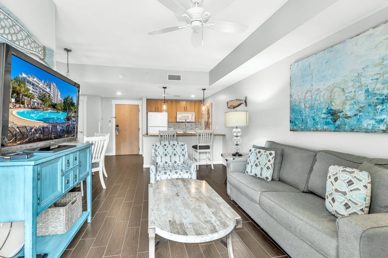Experience elevated resort living in this beautifully updated second-floor residence in Elation, perfectly positioned to overlook the lush events lawn--an idyllic setting for weddings, seasonal festivities, and vibrant resort gatherings. This spacious one-bedroom retreat has been thoughtfully refreshed with modern finishes, including updated flooring, designer lighting, and stylish furnishings that create a turnkey, rental-ready opportunity. The generously sized primary bedroom is filled with natural light and offers convenient access to the bathroom and hallway, while the living area features a sleeper sofa to comfortably accommodate additional guests--enhancing its income potential. As an owner in Elation, enjoy exclusive access to the Solstice Club, along with the Grand Complex pool, hot tub, kiddie pool, and the Grand Sandestin fitness center. Ideally located just steps from Hotel Effie and the lively Village of Baytowne Wharf, you're moments from premier dining, boutique shopping, and year-round entertainment.As an introduction to the Sandestin lifestyle, we invite our new owners to explore amenities that make Sandestin special. The listing brokerage and seller(s) are presenting the buyer(s) of this property with (2) 90-minute rounds of Tennis court time, a golf foursome at one of our three championship courses, and a round of golf for up to four (4) players at the unrivaled Burnt Pine Golf Club.Sandestin Golf and Beach Resort features more than seven miles of beaches and pristine bay front, four championship golf courses, 15 world-class tennis courts, a 226-slip marina, a fitness center, spa and celebrity chef dining. Shop, dine and play at the charming pedestrian village, The Village of Baytowne Wharf and more. Inside the gates of the resort, residents enjoy a balanced lifestyle of high-class living, spanning the 2,400 acres from the beach to the bay. Everything within the gates of the resort is accessible by golf cart or bicycle. The entire resort is interconnected by miles of pedestrian, bike and golf cart paths that weave through groves of live oaks, meandering past natural lagoons, fountains, man-made lakes, and meticulously landscaped fairways.