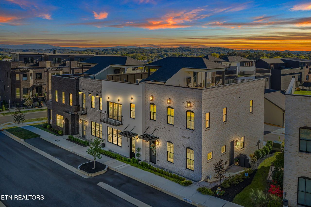 Northshore Town Center! Mountain Views! Rooftop living! Walk to shops, restaurants, This isn't just a home, it's a fresh start! Whether you are in a transition move or are here to stay! This beautiful 2024 3 level corner loft is waiting for you. Gracious size 1st floor, with a 3 way entry and a robust security system. The 2 car carport has custom outdoor storage cabinets, along with 2 security storage closets for all your outdoor hobbies. The glass side door opens to a concrete porch with an American natural gas post mount grill, a grassy area for your furry friend, an irrigation system, beautifully designed large exterior lighting, and pavers to the front glass door and common sidewalk. Plantation shutters on every window with 3M energy film, daytime privacy, heat rejection, and UV protection. Open floor plan, modern appliances, cabinets, quartz countertops, island, and pantry. Powder on main. Hardwood &tile flooring thru-out. Abundant natural light floods this loft enhancing its warm and inviting atmosphere. The second floor boasts primary bedroom, large enough for a king size bed, ensuite tiled bath with an xl shower. Laundry room has custom storage, GE smart washer/dryer. A second bedroom, large enough for a king size bed/or office, ensuite tiled tub shower combo. 3rd floor offers a mini-bar and XO Beverage center refrigerator. A glass door opens to an outdoor covered roof top deck, wired for a TV and an XL artificial turf, ready for outdoor games or more seating/sun lounging. Low maintenance, high styled in the middle of everything. Large community commons area and a pool in 2026! Park the car and enjoy one of the hightest walkability scores in East Tennessee! Target, Publix, parks, restaurants, UPS, school, dentist,coffee shops are all a sidewalk stroll away!