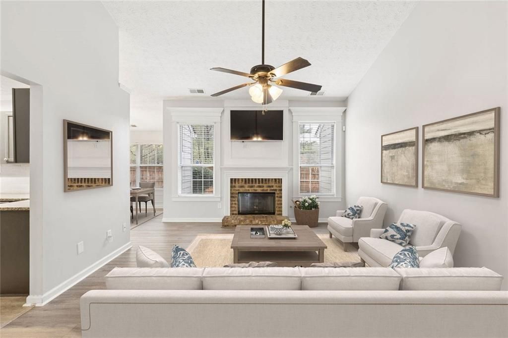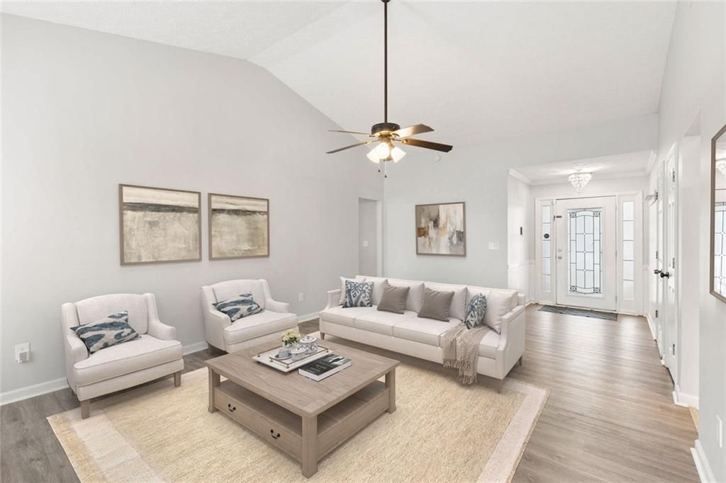 Welcome to 9880 Rivercliff Lane, a thoughtfully updated home offering easy one-level living with added flexibility in Villa Rica. Built in 2001 and upgraded over the years, this 4-bedroom, 2-bath home features durable luxury vinyl flooring throughout and a spacious main living room anchored by a cozy fireplace, perfect for everyday living and entertaining. The layout flows effortlessly, with bedrooms situated on one side of the home and the kitchen and dining areas on the other, all connected through the central living space, allowing for easy interaction without sacrificing defined areas. The kitchen overlooks the dining space, creating a natural gathering point, while the oversized primary suite offers a large walk-in closet and an updated bathroom for a comfortable retreat. Upstairs, the expansive bonus room, serving as the fourth bedroom, provides incredible flexibility for a second living area, guest space, or home office. Major updates include a roof approximately six years old, a new 50-gallon water heater, and recently installed blinds, adding to the home's overall value and peace of mind. Situated on just under half an acre, the flat, privacy-fenced backyard backs directly to the community lake, complete with a rear gate for easy access, perfect for outdoor enjoyment and everyday adventure. The home also sits nicely off the street with a generous front yard, enhancing both curb appeal and privacy. Conveniently located with quick access to I-20 and just minutes from downtown Villa Rica, this home offers the ideal blend of small-town charm, everyday convenience, and accessibility to all that Metro Atlanta has to offer. With its combination of recent updates, flexible layout, and a rare lot backing to the community lake, this home presents a compelling opportunity for buyers looking to maximize value in a growing area.