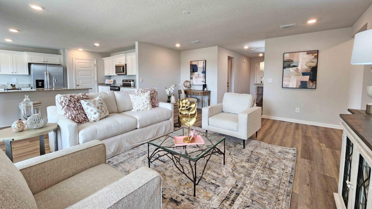 The Cairn is a single-story home that is well laid out and offers 4-bedrooms and 2-bathrooms in over 2,000 square feet of space with a 2-car garage.Entering the home from the front porch to one side, are two bedrooms nestled close to a full bathroom and access to the laundry room. An additional bedroom is directly across the foyer which also allows access to the garage. The Cairn has a fabulous open kitchen, featuring a walk-in pantry and large island perfectly suited for bar-dining. The kitchen overlooks the dining and living room areas leading outside to a large, covered porch for an extended living and entertaining space.The spacious primary bedroom, located at the back of the home for privacy, offers natural light from large windows creating an inviting, spacious retreat. The ensuite bathroom has a double vanity with granite countertop, garden tub, standing shower, separate water closet and a large walk-in closet.The Cairn includes a Home is Connected smart home technology package which allows you to control your home with your smart device while near or away. Pictures may be of a similar home and not necessarily of the subject property. Pictures are representational only.