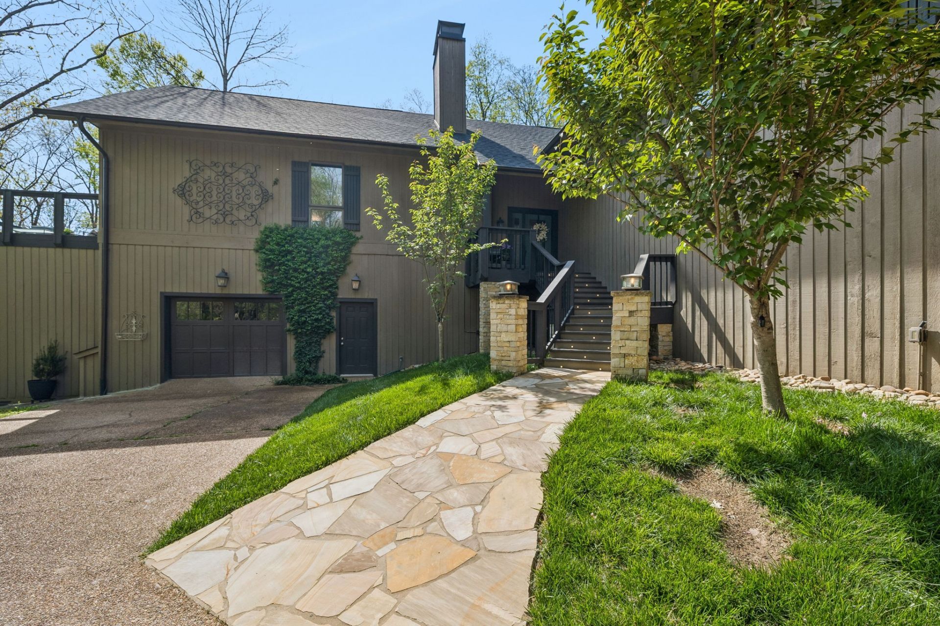 Beautiful private retreat offering the best of both worlds-the feel of a mountain chalet just minutes from downtown Franklin, The Factory, and Cool Springs. Exposed wood beams, a stunning stone wood-burning fireplace, abundant windows, and a wraparound deck with cable railings and custom wrought iron staircase create the perfect setting to relax, unwind, or entertain. Multiple trails throughout the property offer scenic morning walks or ATV adventures.The renovated eat-in kitchen features a leathered granite island, while the formal dining room opens to the main living area for easy flow. The home includes two bedrooms on the main level and two additional bedrooms on the lower level. The spacious primary suite features a gas fireplace and loft area.The lower level includes a second kitchen, creating an ideal opportunity for guest quarters or an in-law suite. A third-floor loft room offers flexible space for an additional bedroom, office, or hobby room. An elevator servicing all floors and laundry rooms on both the main and lower levels add everyday convenience.Two attached garages provide room for multiple vehicles, workspace, and ample storage. Lower garage is heated and cooled. Connected to city sewer. See attached document for list of all improvements. Floor plan and measurements in document below.