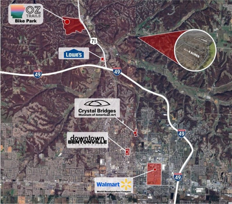Location, Location, Location - BEST OF BOTH WORLDS - In the county, outside of city limits with lush trees, hills, and starry nights! Only 5 minutes from I-49, 11 minutes from Downtown Bentonville and 14 minutes from Walmart HQ. Less than 2 miles from the new OZ Trails system park with a gondola that is planned just west of 71Business. Discover +/- 2.46 acres of wooded land for sale just outside of Bentonville, offering the perfect opportunity to build your dream home in a peaceful yet convenient location. Situated near E McNelly Rd, this property is approx. 1.5 miles from US 71 Highway and just 2 miles from I-49, ensuring easy access to nearby amenities, shopping, and dining. Located within the highly sought-after Bentonville School District, this land provides an excellent investment in a rapidly growing area. Don't miss out on this prime piece of land in a thriving Northwest Arkansas Community! Seller is willing to split up the lots in different sizes so long as the county will approve.