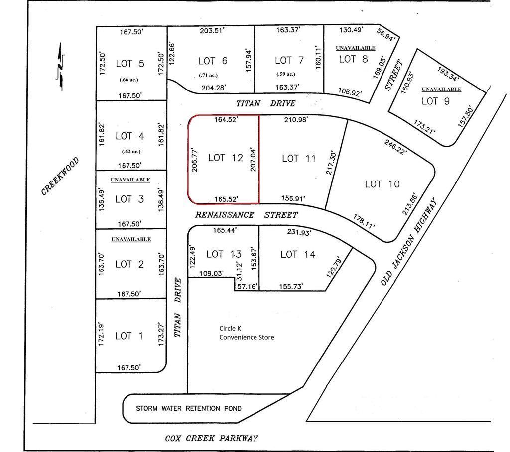 Lot 12, commercial lot located in commercial development just off of Cox Creek Parkway. Park sits close to the heart of the major shopping and restaurants area for Florence. Zoned B1. 24,000+ vehicles a day traffic count (2021 ALDOT).
