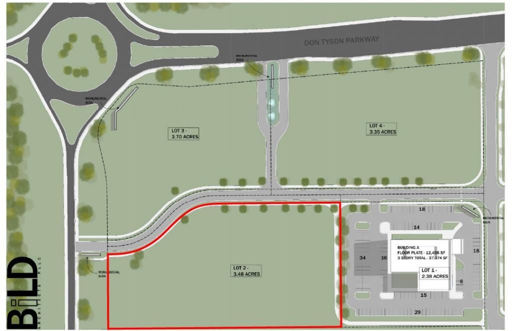 Highly desirable commercial lot containing 3.48 acres located at the corner of Don Tyson Parkway and 56th Street, just West of I-49. With excellent interstate accessibility, this property is great for retail, hotel, office, and medical development. Located near Highlands Oncology Children's Hospital, Arvest Ballpark, and NWACC. All utilities available. Commercial Zoning. Lot is open, level, and ready to build! Owner will subdivide. Over 9.5 total acres available: see ML#1202039 and ML#1201861.