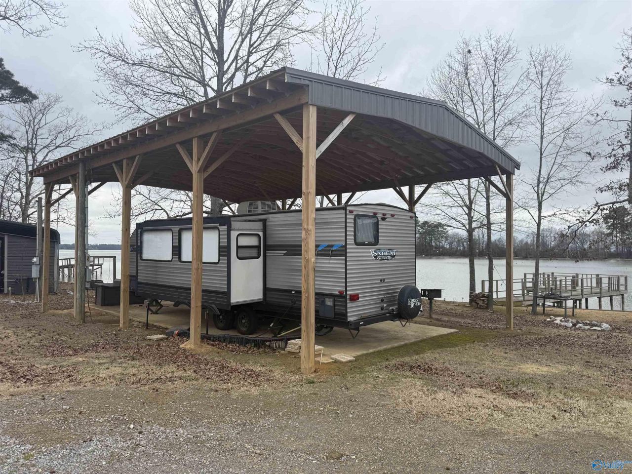 Lot is at Three Mile Resort on CR 1004 on the main channel. Deeded waterfront. Approx 0.080 acres, and comes with a 2021 River Forest Salem camper. Sleeps 8-10 people and has a dock that you and your family can enjoy in the summertime. Does has power and water. Perfect site to enjoy the lake, have a BBQ, get a few jet skis, a boat and do a little fishing.