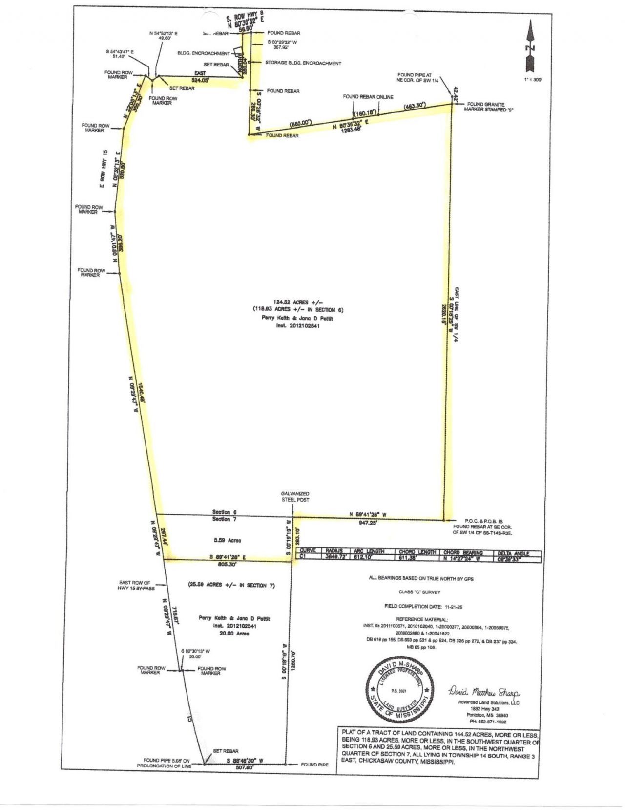 Excellent farm/development land of 124.52+/- acres located on four lane Hwy 15 S/ Hwy 8 bypass adjoining city limits. Two accesses to property