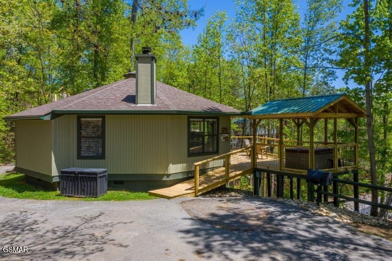 Beautiful Mtn. Views of MOUNT LECONTE Just 5 Min to Gatlinburg, Covered Hot Tub under Lighted Gazebo*This cabin is a guest favorite*If you are looking for a cozy, beautifully decorated cabin with beautiful mountain views this is it. ''Cozy Mountain View'' offers privacy in a resort setting, yet only 5 minutes from downtown Gatlinburg. Best of both!Cabin offers 2 bedrooms with 2 bathrooms and a queen sleeper sofa. Features include a wood burning fireplace, hot tub under covered and lighted gazebo, gorgeous mountain views, surrounding wooded areas with lots of trees, super comfortable beds, fully stocked kitchen and outdoor park grill. Road is fully paved and not too steep. All this and only 2 1/2 miles from downtown Gatlinburg.Resort pool available in season. (Memorial Day through Labor Day)You can choose to simply relax by the wood fire, soak in the hot tub with mountain views, visit many local attractions in Gatlinburg, Pigeon forge or Great Smoky Mountains National Park, shop at local craft markets, visit Dollywood, attend dinner shows and much more.Cozy Mountain View is also very convenient to the famous Glades Authentic Crafts shopping District and Rocky Top Sports World. Dollywood is 15 minutes away and Smoky Mountain National Park only 10 minutes away..Cabin made 58,000.00 on average for the past 3 years running! Can't beat the reviews: ''My family and I truly enjoy our time spent in this super relaxing cozy cabin. No doubt you will feel the same! Enjoy your stay!''Call today and le't GET STARTED IN YOUR SMOKY MOUNTAIN DREAMS!