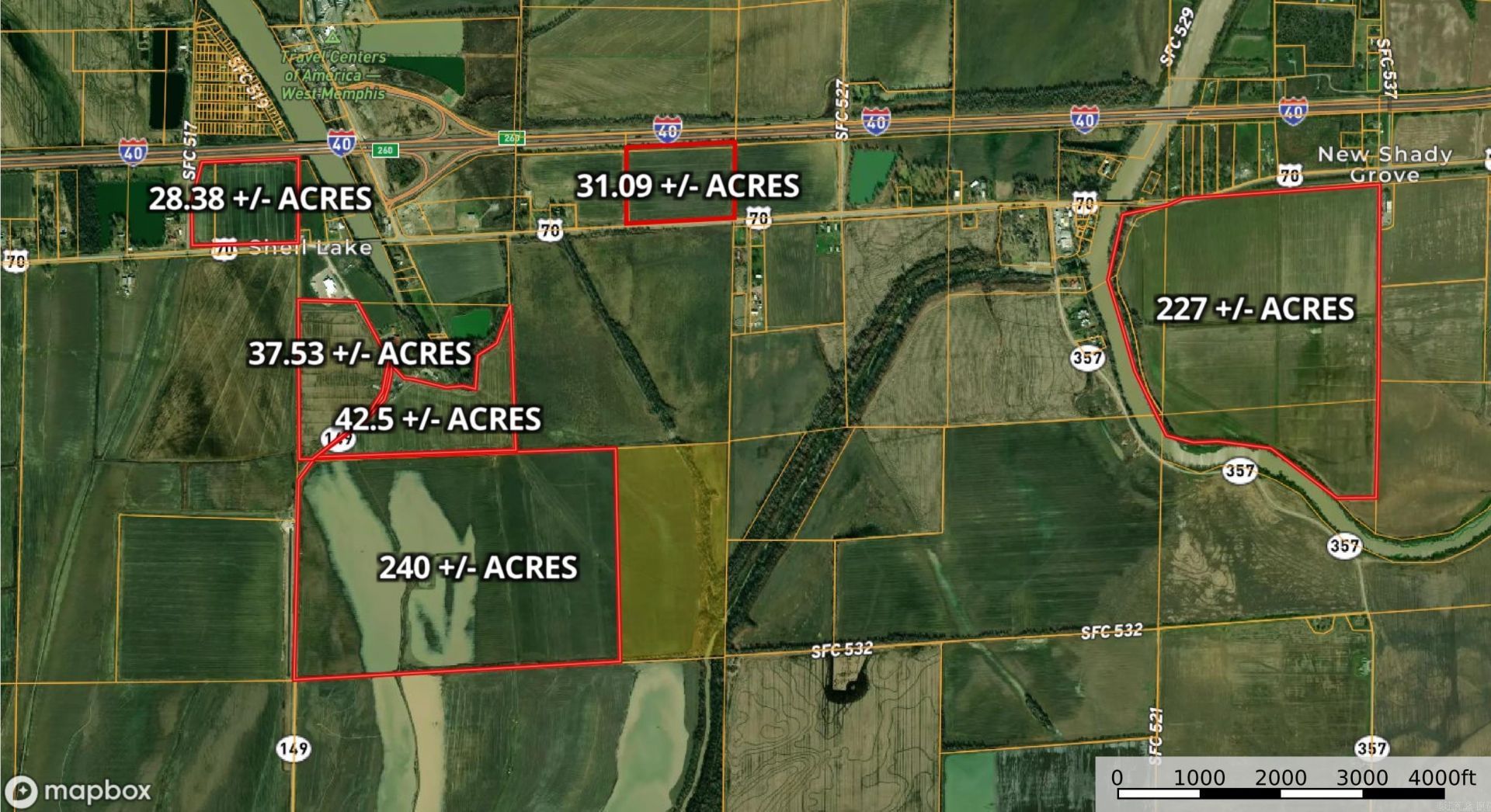 This farm, totaling 606.5 acres, is comprised of four tracts with diverse features. The property offers a mix of cropland, recreational hunting opportunities, and lakefront access, making it a unique investment near Memphis, Tennessee. This farm is comprised of four tracts, being sold as one farm, and the details are as follows: Tract 1: 28.38+/- Acres Tract 2: 31.09 +/- Acres Tract 3: 227 +/- Acres Tract 4: 320.03 +/- Acres