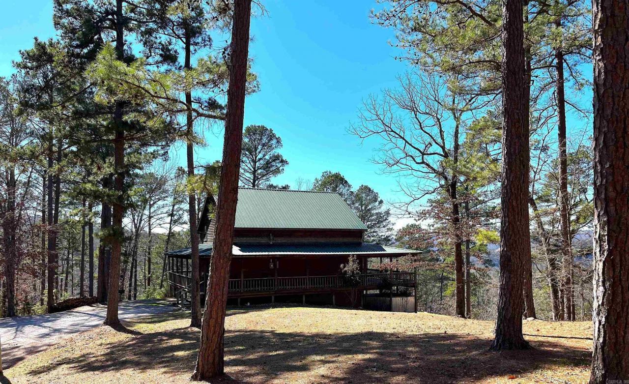 Custom cabin perched high on a mountain in a beautiful, gated cabin community. The cabin was strategically built to take advantage of the gorgeous views looking over the White River Valley. Built in 2008, there's 5 sleeping areas and 2 full baths. The living area has a vaulted ceiling, floor to ceiling propane fireplace and floor to ceiling windows. The kitchen is very spacious with an island and a bar. Master bedroom is on the main level featuring large windows with big views and access to the covered deck. Upstairs is a large sitting/tv area, 2 guest bedrooms and guest bath. The finished basement has 2 sleeping areas, game room and a tv area. The wraparound porches provide plenty of outdoor entertaining or relaxing areas. The 13+/- acres is very diverse with woods, trails, seasonal waterfall and spectacular views. An outdoor shower lets you clean up after a busy day exploring. White River public boat ramp is approximately 1.6 miles away. You are only minutes from the National Forest, Blanchard Springs Caverns and all Mountain View have to offer. Property is currently on a successful nightly rental program. Restrictions are in place to protect your investment.